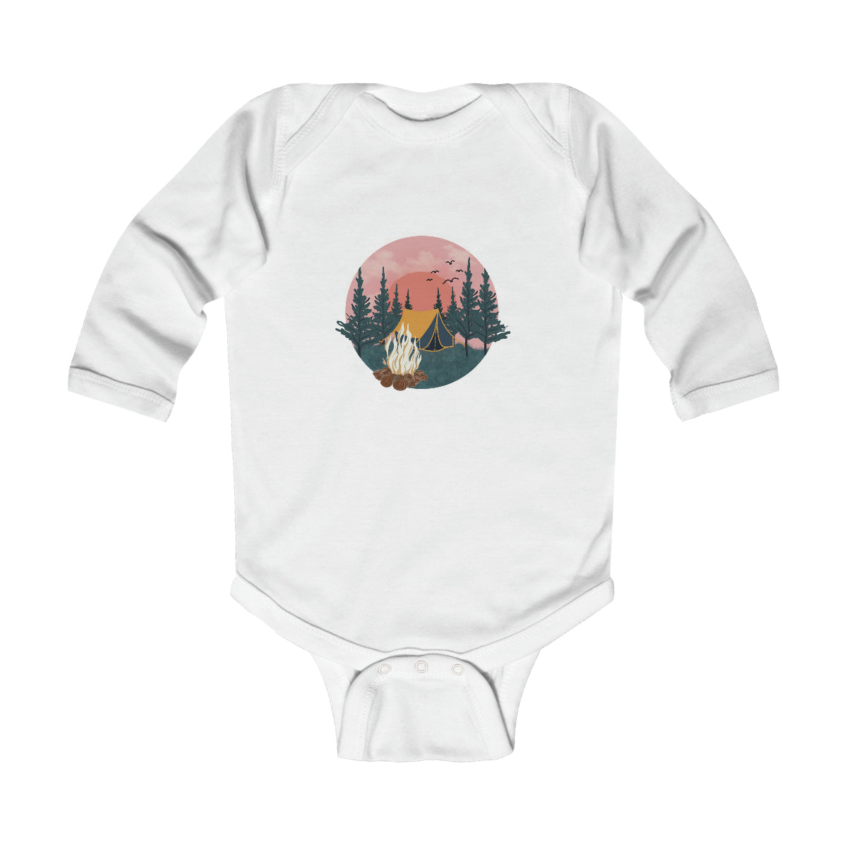 Any product designed for babies needs to hold up. The infant long-sleeve bodysuit does just that. Solid colors are 100% cotton. Other colors will include polyester. Either way, the fabric will be smooth and soft against the young one's skin. There are plastic snaps at the cross closure for easy changing. All bindings have ribbed knitting for durability and improved range of motion.